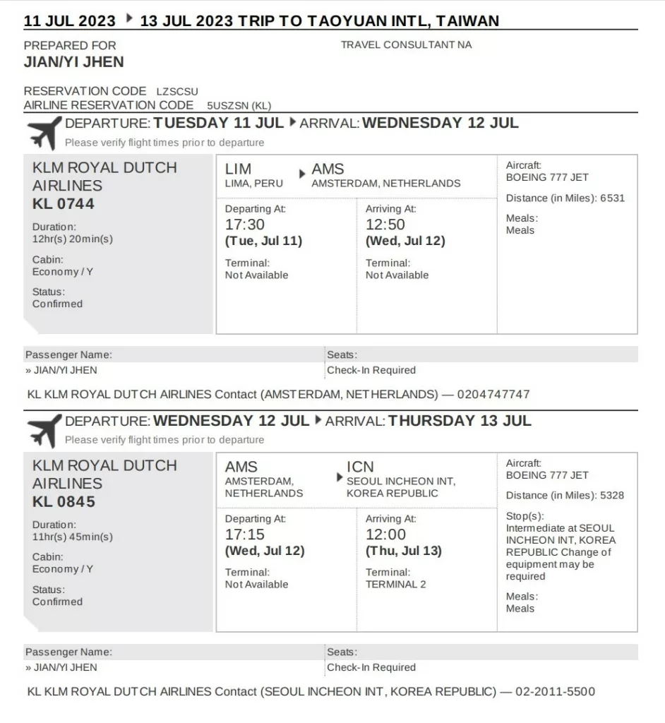 (我當初拿預定號碼去航空公司的網站試試看,真的找得到那筆預訂欸~~)