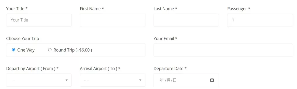 輸入【個人資訊、單程/來回、出發地&目的地、起飛日期】。